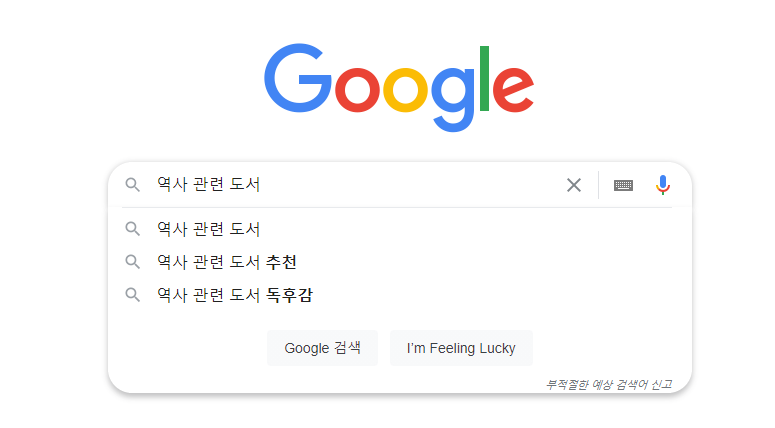 들어가는 경로는 매우매우 쉽다. 설명도 할 필요가 없을 것 같긴 한데 그래도 친절하게 설명해보겠다. 우선 구글 사이트에 들어가면 흔히 알고 있는 검색창이 보인다. 여기에 읽고 싶은 책을 검색한다. (우리가 일반적으로 검색할 때와 똑같다) 나는 "역사 관련 도서"를 입력해보겠다.