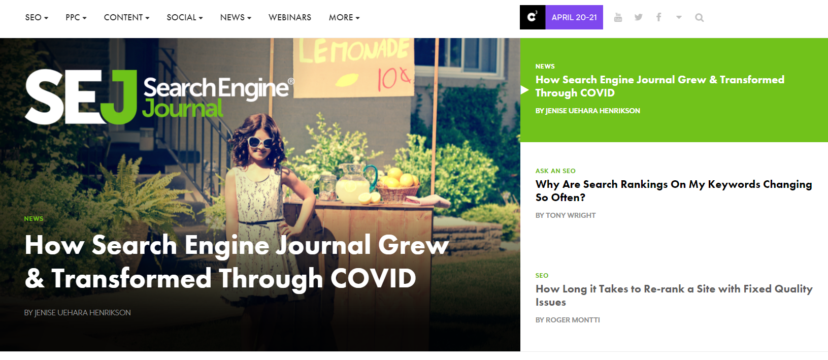 세 번째 사이트는 Search Engin Journal 이란 사이트다. 그나마 언론사의 느낌 많이 받을 수 있는 곳이다. 매체의 이름 그대로 Search Engin 저널이기 때문에 서치 엔진과 관련한 뉴스가 많이 있다. 개인적으로는 앞 2개의 사이트보다 훨씬 유용한 사이트라고 생각한다. 직관성도 그렇고, 자료들도 그렇고 훨씬 나에게 신뢰를 준 곳이다. 대부분의 정보는 여기서 많이 획득하는 편이긴 하다. 이 사이트를 맨 처음 소개해 드리려고 했지만, 아무래도 사용자 의견이 적다는 단점이 있기 때문에 3번째로 미뤄두었다.