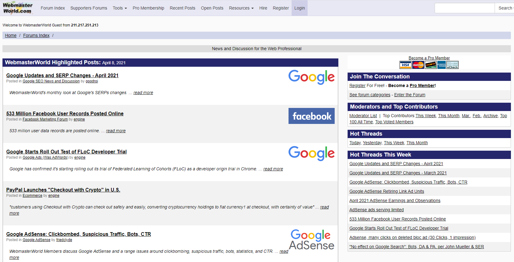 두 번째 사이트는 WebmasterWorld.com이라는 사이트다. 첫 번째 사이트와는 다르게 주로 대화를 통한 아이데이션이 이루어지는 사이트이다. 쉽게 이야기하면 이런 식이다. 사이트 측에서 언제 업데이트할 것 같네요~ 라는 글을 올리면 이와 관련한 의견을 가진 사람이 댓글을 다면서 의견을 나누는 형태라고 할 수 있다. 공식적인 업데이트 정보를 알려주기보다는 업데이트와 관련한 의견을 듣기에 좀 더 유용한 곳이라고 생각한다. 다만, 첫 번째 사이트보다는 직관성이 부족한 건 사실이다.