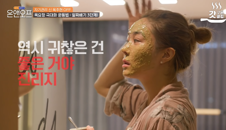 이런 말을 중얼거리면서 운동도 하고, 팩도 하고, 몸 관리도 하는 모습을 영상에서 보여주고 있다. 단순히 자기 관리가 육체적인 모습만을 강조, 건강한 모습을 강조했던 것과는 달리, 옥주현 씨는 내면적인 강함과 건강함을 이것을 통해서 보여주었다.