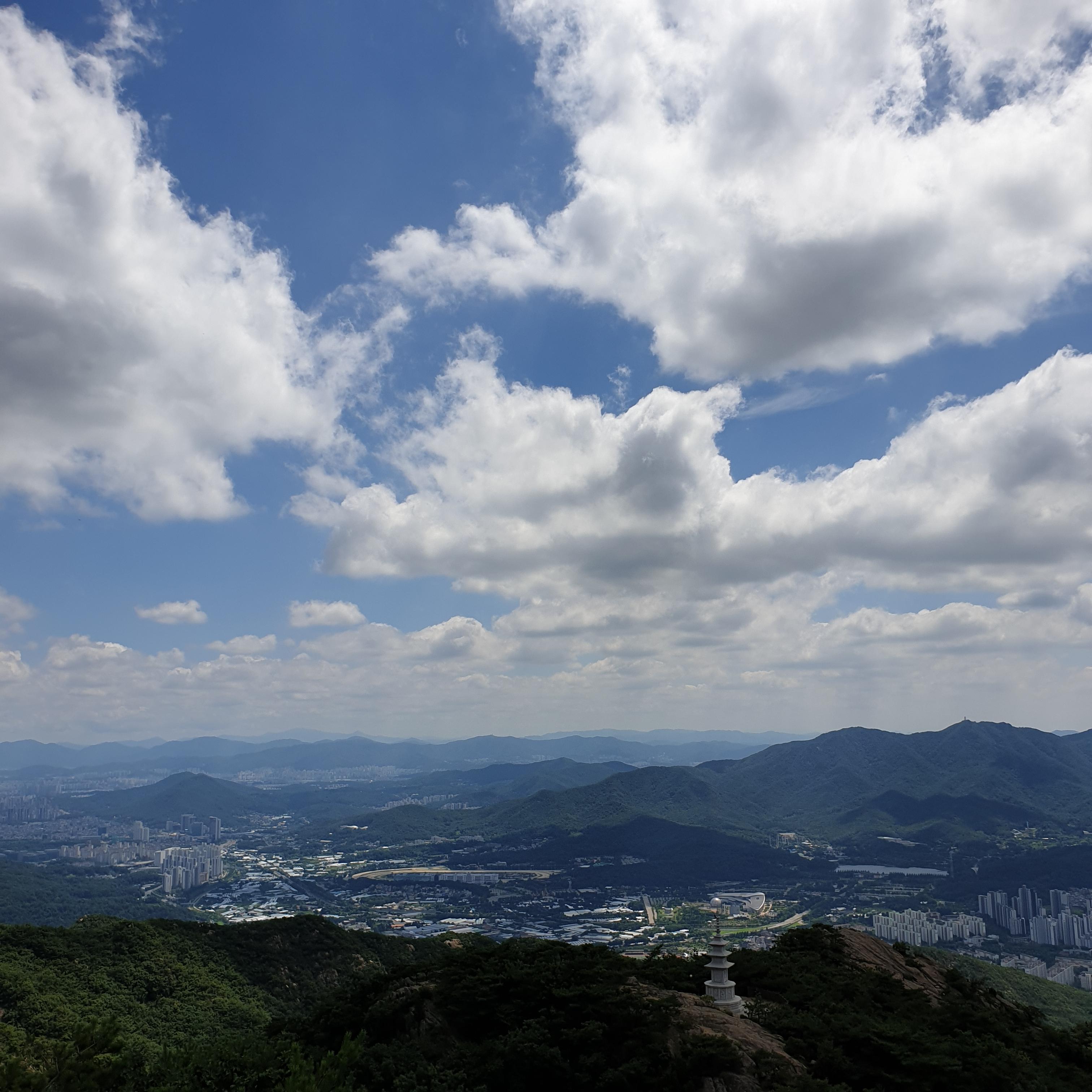 정상에 오르니 소음이 없었다. 산은 소음이 없는 곳이었다. 물론, 갑자기 사람이 많아져서 여기저기 사진 찍는 소리, 대화하는 소리가 즐비했지만 그래도 도심 속 소음보다는 없었다. 멍하니 하늘 아래를 살펴보니, 보는 것만으로도 소음이 들리지 않은 듯한 환상이 보였다. 정상에 오른 사람의 목소리는 들리지 않았다.