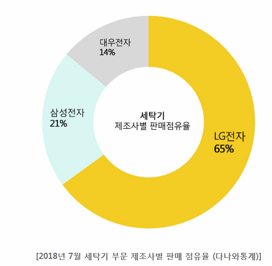 그렇다면 광고를 많이 쓴 삼성이 점유율이 '무조건' 1위일까? 내가 생각하기에는 '절대 아니다!'. 많은 제품 군 중에서 세탁기만 떼어놓고 이야기를 해보면 아이러니컬하게 국내 세탁기 점유율은 LG가 1위다. 반대로 미국에서는 리서치 회사 트랙라인에 따르면 삼성이 20.5%로 1위, 엘지는 16%로 2위를 차지했다고 한다. 또한, 다른 리서치 회사 JD 파워에 따르면 만족도에선 LG가 1위를 하고 있다.